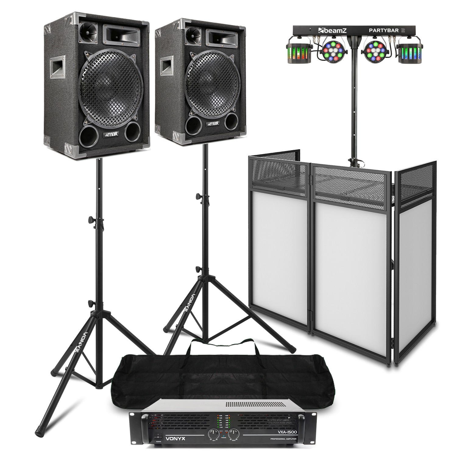 Vonyx VX1080BT DJ & PA Speaker System with DB3 DJ Booth and PartyBar12 Lights