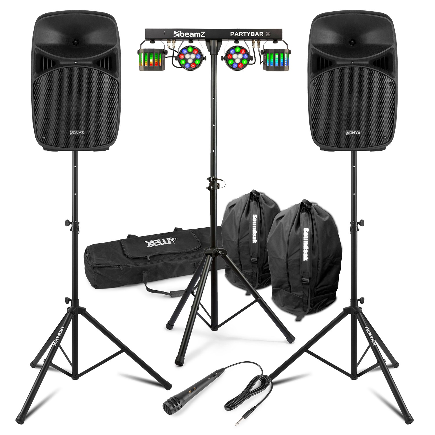 Vonyx VPS122A 12" Active DJ Speaker Package with PartyBar2 LED Lighting & Bags