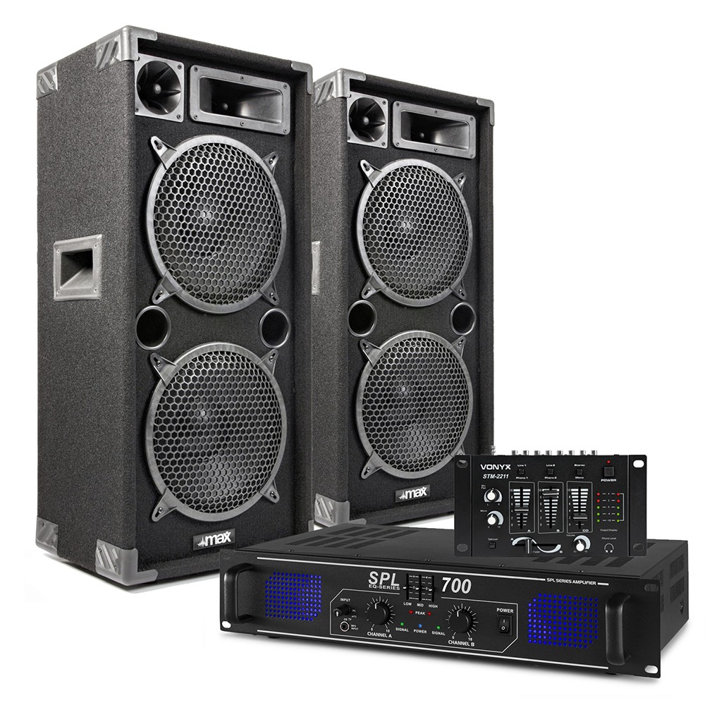 Max 10" Dual Passive DJ Speaker + SPL 700 Amplifier + Mixer System 1800W