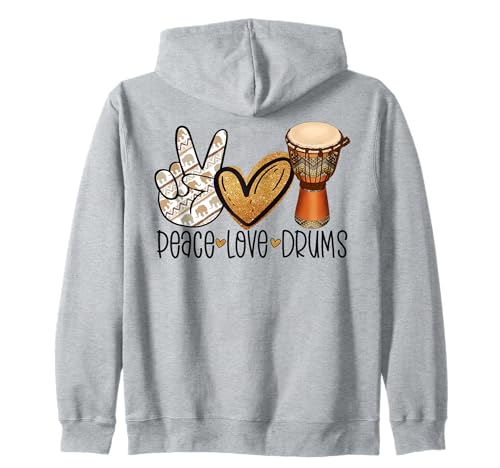 Peace Love Drums Djembe Player Africa Drum Ethnic Djembe Zip Hoodie