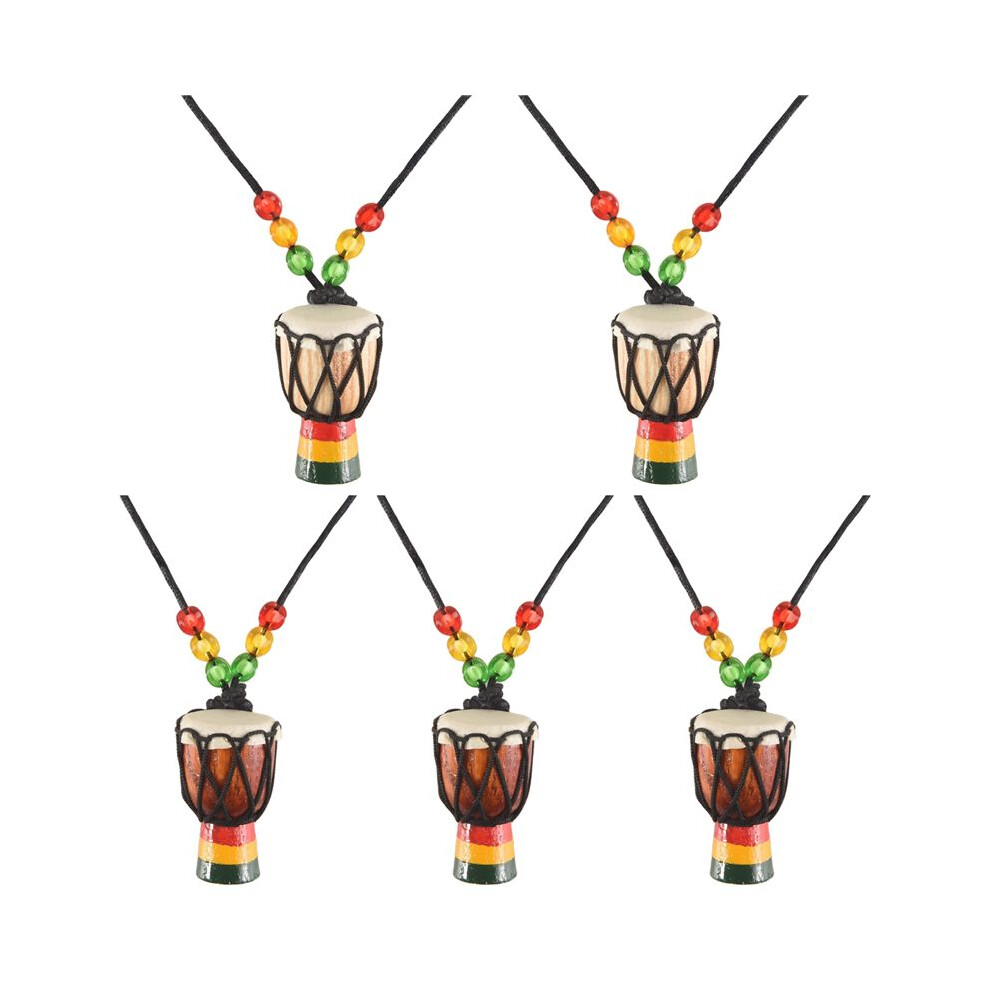 5 Pcs Instrument Necklaces Djembe Drum Pendant African Drum Wooden Necklace Drums and Percussion