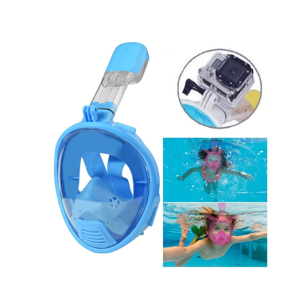 Kids Full Face Snorkel Mask for GoPro, Insta360, DJI & Action Cameras (Blue)