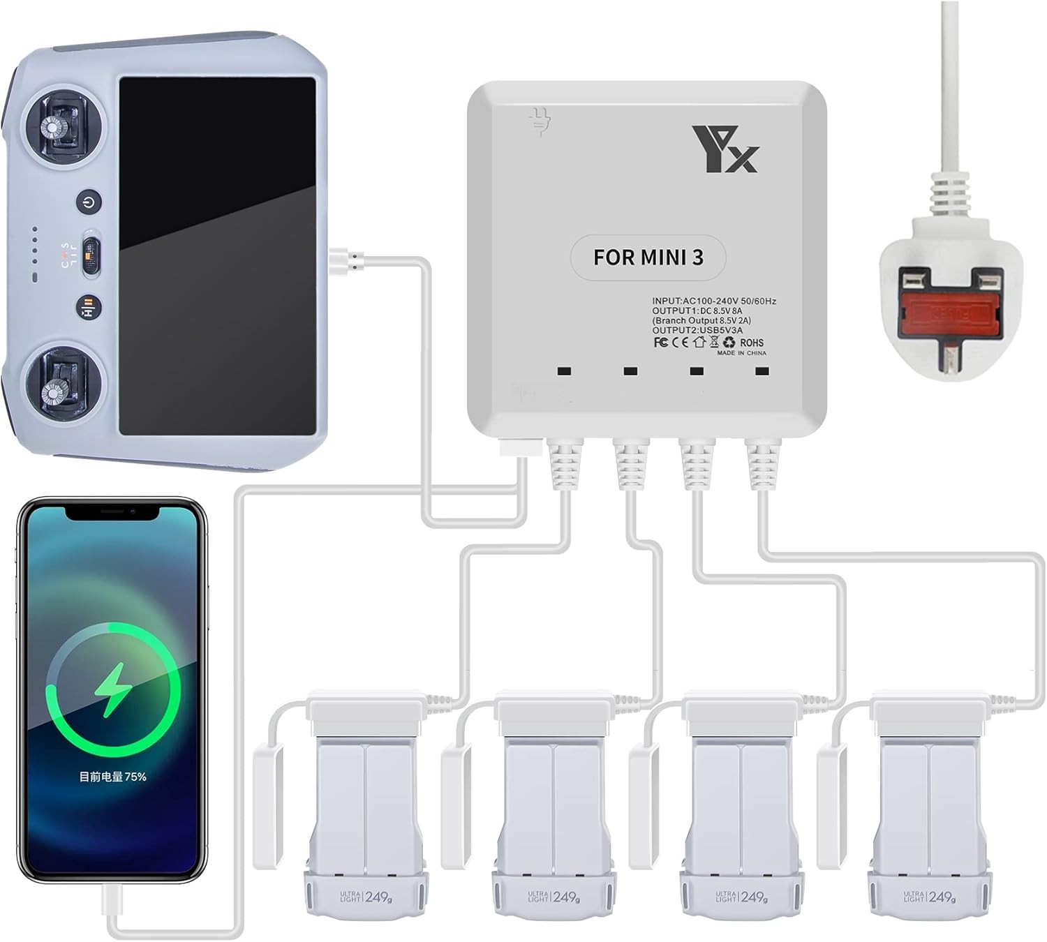 6 in 1 Rapid Battery Charger for DJI Mini 4/3 Pro,Mini 3 Drone,Charge 4 Batteri
