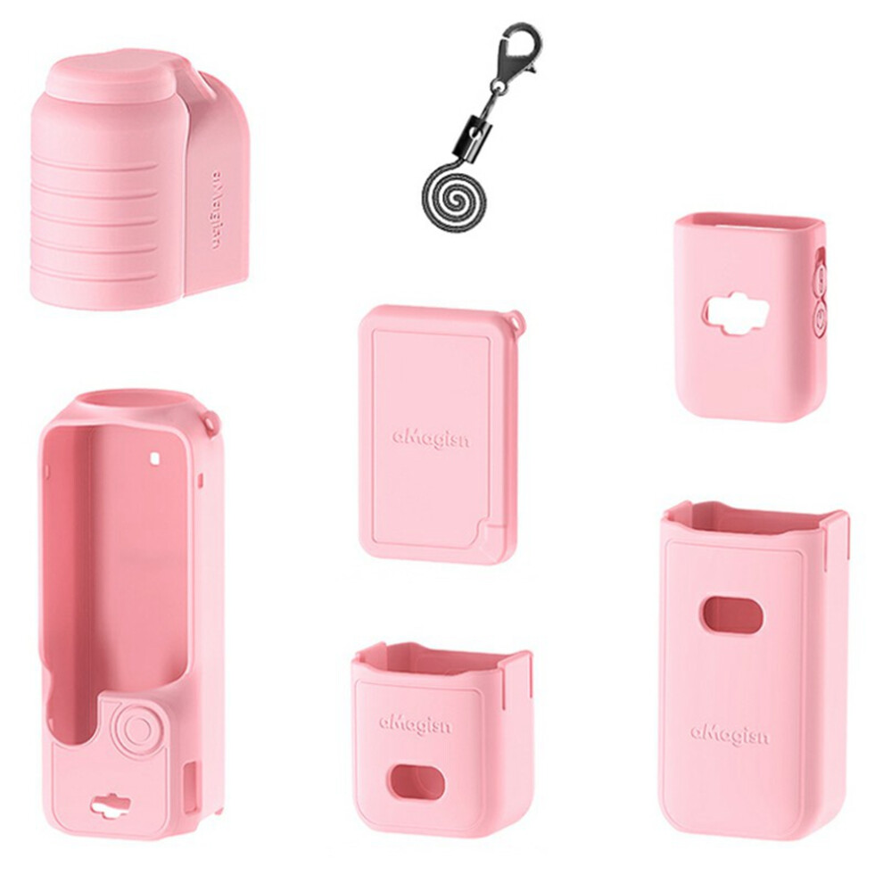 (Pink) For DJI Osmo Pocket 3 Silicone Protective Case Lens Cap Gimbal Guard Accessory
