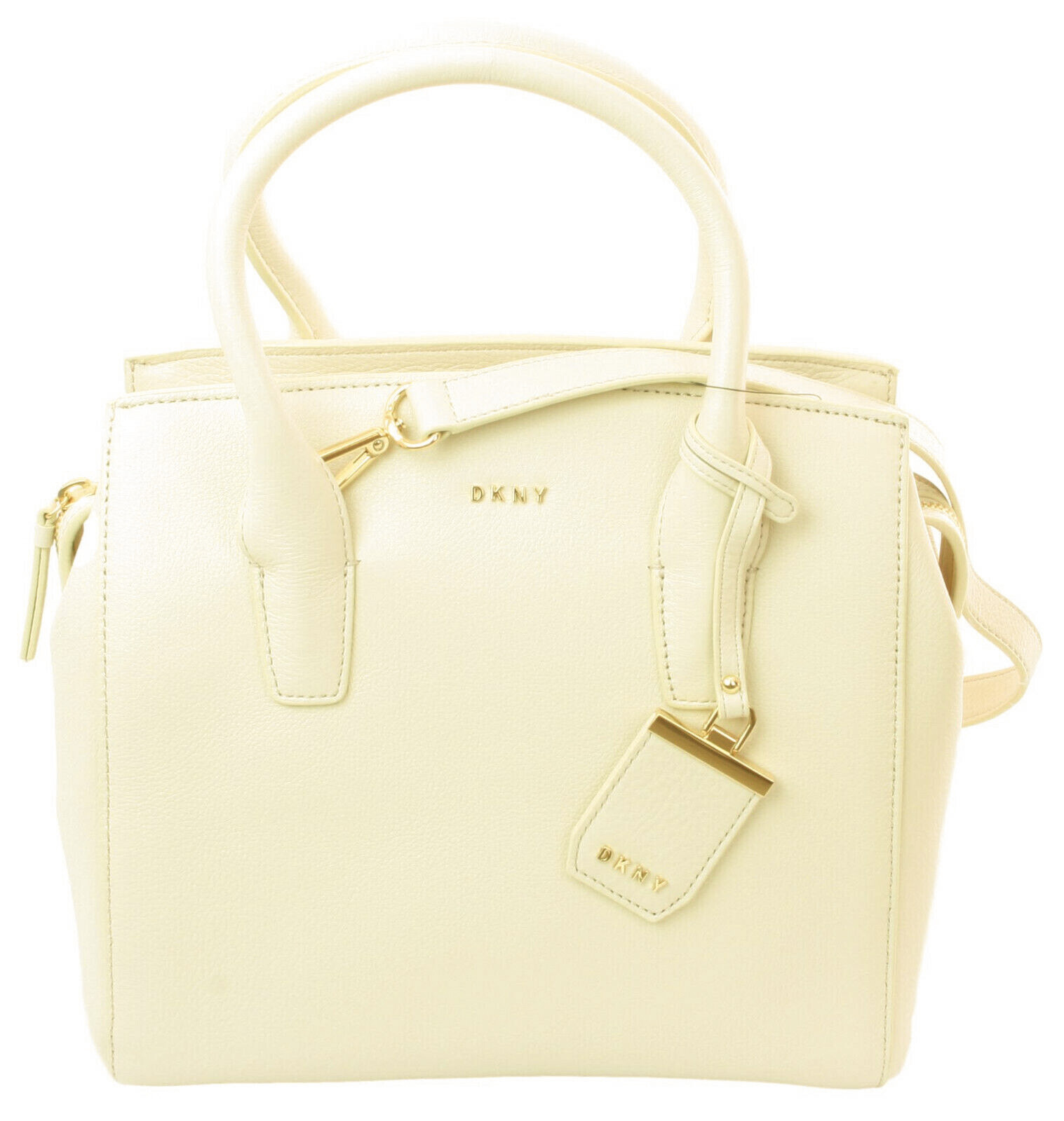 DKNY Tote Bag Cream Ivory Off White Sand Dollar Medium Leather Shoulder Handbag