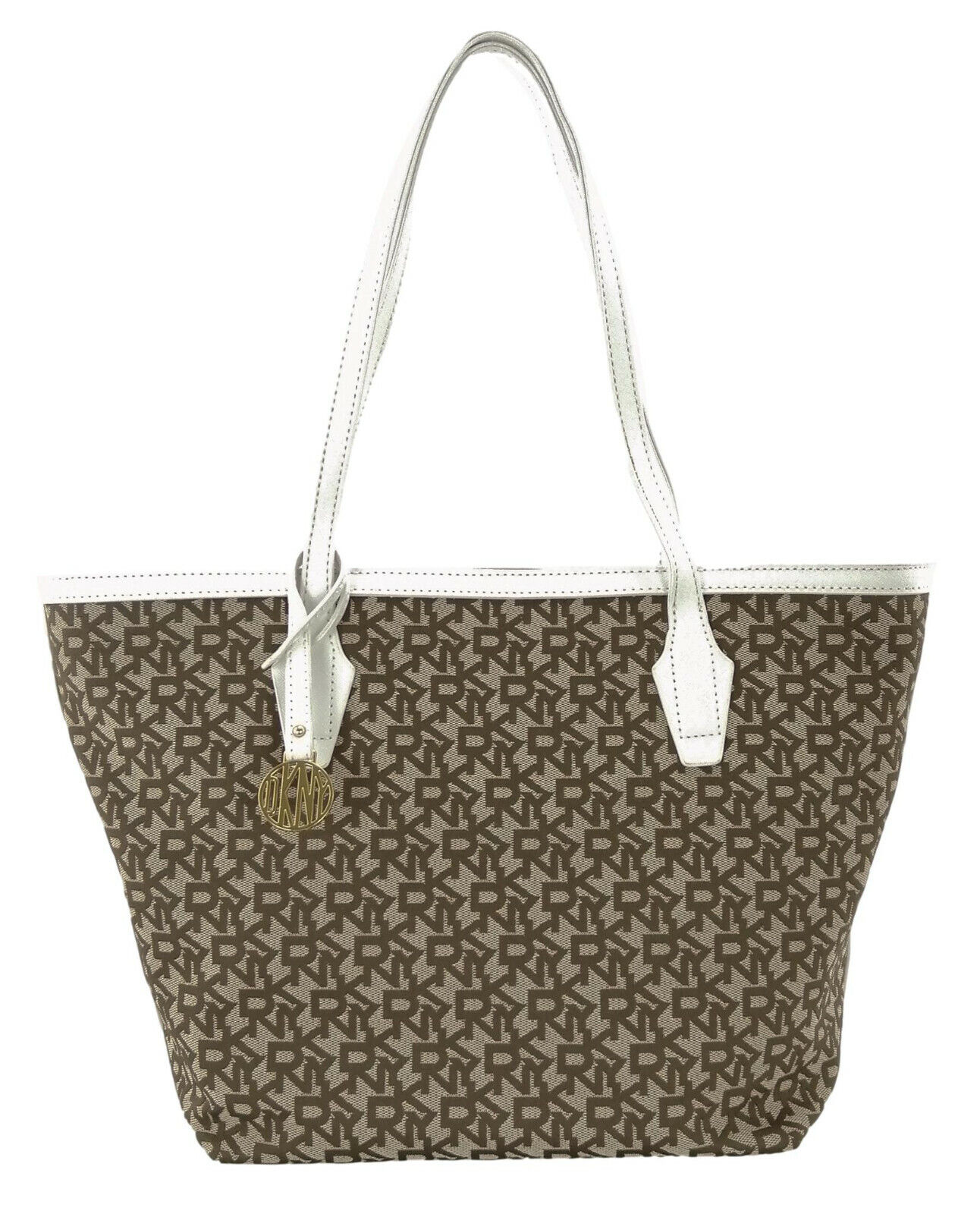DKNY Tote Bag Brown Canvas Logo Medium Top Zip Womens Heritage Handbag RRP £260