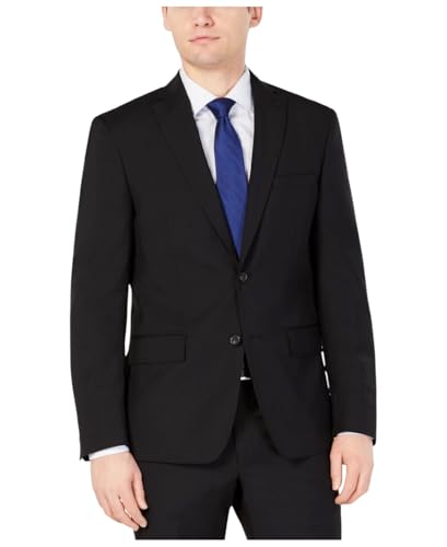 DKNY Men's Modern Fit High Performance Suit Separates Business Jacket, Black Solid, 38