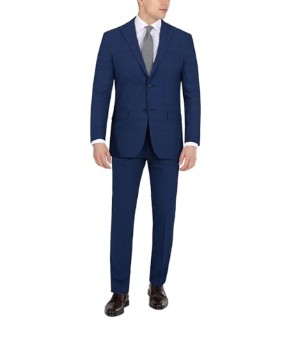 DKNY Men's Suit Dress Pants, Blue Plaid, 38W / 34L