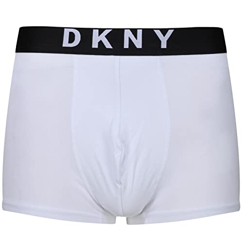 DKNY Men's Men's Boxer Shorts | Soft to Touch Cotton With Elasticated Waistband Men s DKNY Trunks NEW YORK Designer Underwear for Men Pack of 3 White, White, M UK