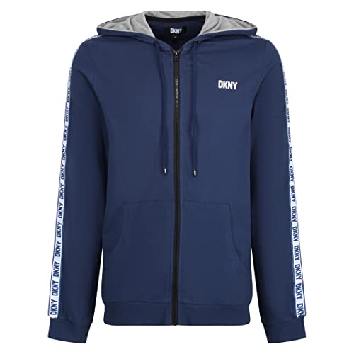 DKNY Men's Dkny Long Sleeved Hooded Zip Top in Navy With Branded Arm Detailing - 100% Cotton Men Hoody, Navy, S UK