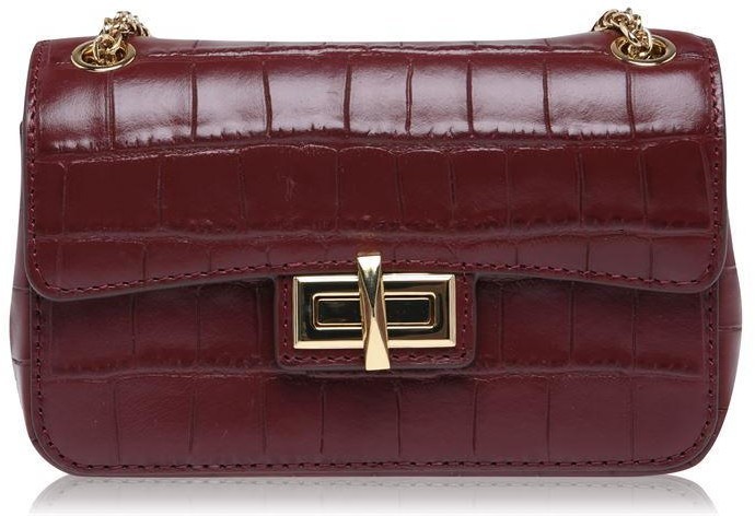 DKNY Womens Aged Wine Red JoJo Crocodile Small Flap Over Crossbody Bag BNWT