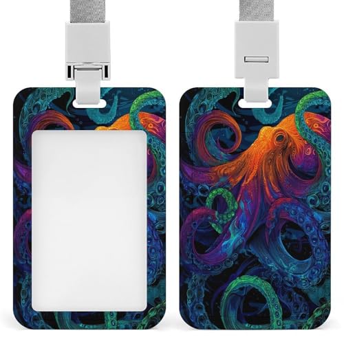 Jubonexis Neon Octopus with Swirling Tentacles ID Badge Holder Retractable Clip Card Holder Card Protector Name Badge Name Tag for Work Office Doctor Nurse