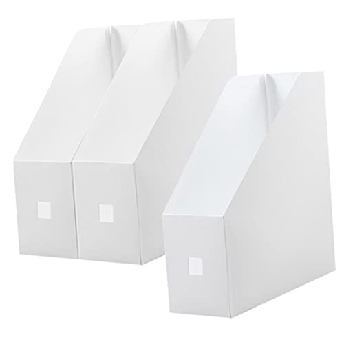 FUNOMOCYA 3pcs Vertical File Document Box Organizer 9x24x27cm Frosted White Plastic File Holder for Office Desktop Storage Suitable for Magazines and Documents
