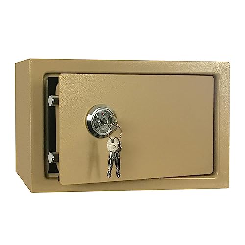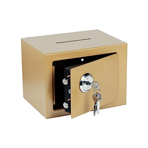 JOJIDE Key Safe Outdoor, Document Safe Box Metal Office Storage Steel Safety Cabinet Home Certificate Safe Box Key Safe Box,for Home Garage School(Gold without hole)