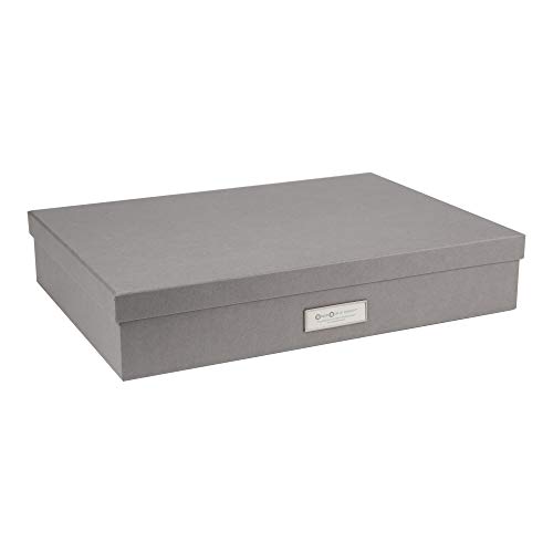 Bigso Box of Sweden Document Box with Lid for Papers in A3 format - Document Organiser Tray with Lid and Handle - Storage Container Made of Fibreboard and Paper - Grey