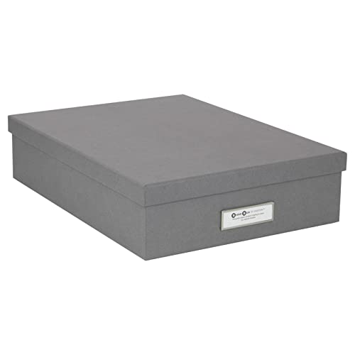Bigso Box of Sweden Document Box for A4 paper, Brochures and Notes - Box with Lid and Handle - Fibreboard and Paper Box Storage with Lid - Grey
