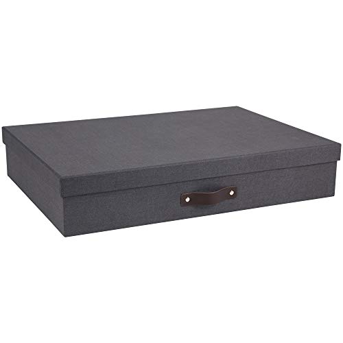 Bigso Box of Sweden Document Box with Lid for Papers in A3 Format - Document Organiser Tray with Lid and Handle - Storage Container Made of Fibreboard and Paper - Dark Grey