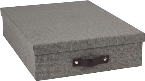 Bigso Box of Sweden Document Box for A4 paper, Brochures and Notes - Box with Lid and Leather Handle - Fibreboard and Paper Box Storage with Lid - Grey