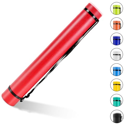 DEWEL Document Storage Tube Plastic Expanding Poster/Art Tubes 24.5 to 40 inches Adjustable with Carrying Strap Waterproof and Light-Resistance Telescoping Carrying Case (Red)