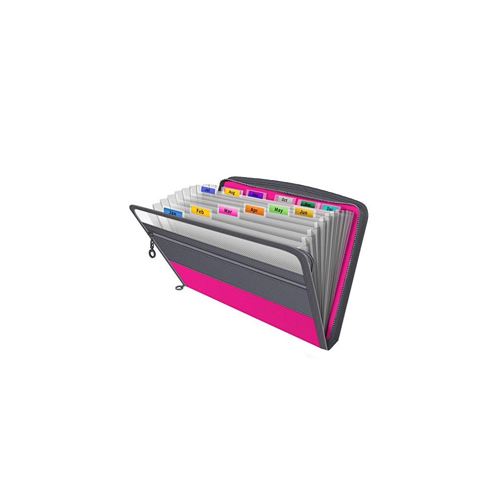 Expanding File Folder,Fun Storage Document Organiser Box Files,13 Pockets Zip Filing Folders,5 Colours,Accordian File Folder with Tabs,Expandable