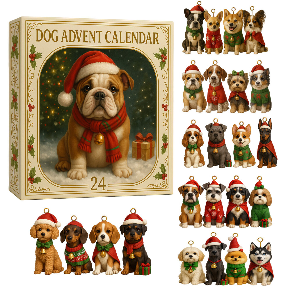 (StyleA) Christmas Advent Dog Calendar Blind Box 24 Day Decoration Countdown Pendant