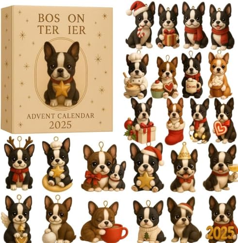 Bost-On-Terri-Er Advent Calendar 2025,24 Days Of Festive Boston Terrier Ornaments,2d Christmas Countdown Calendar, For Dog Lovers & Collectors,1Pcs