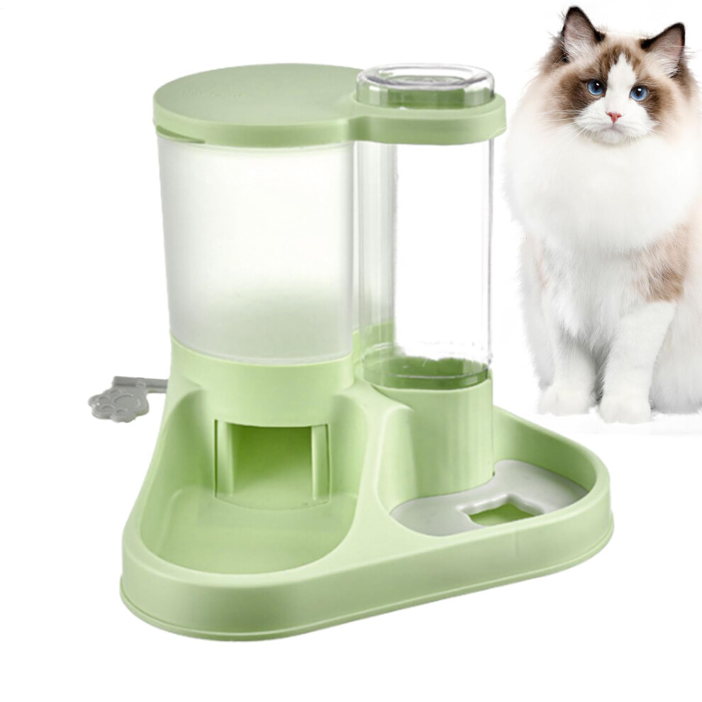 Dog Food and Water Bowl 2In1 Automatic Pet Feeder Kit, Large Opening, Green, For Cats, Dogs, and Other Animals