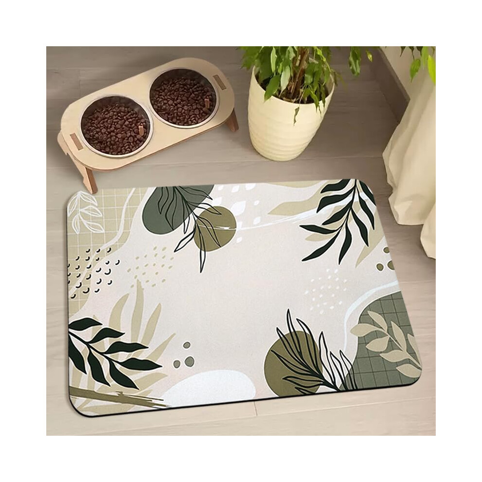 Dog Food and Water Bowl Mats - Waterproof Absorbent Pet Feeding Placemats for Floors - Bohemia Tropical Leaves Design 24 * 32 Inch