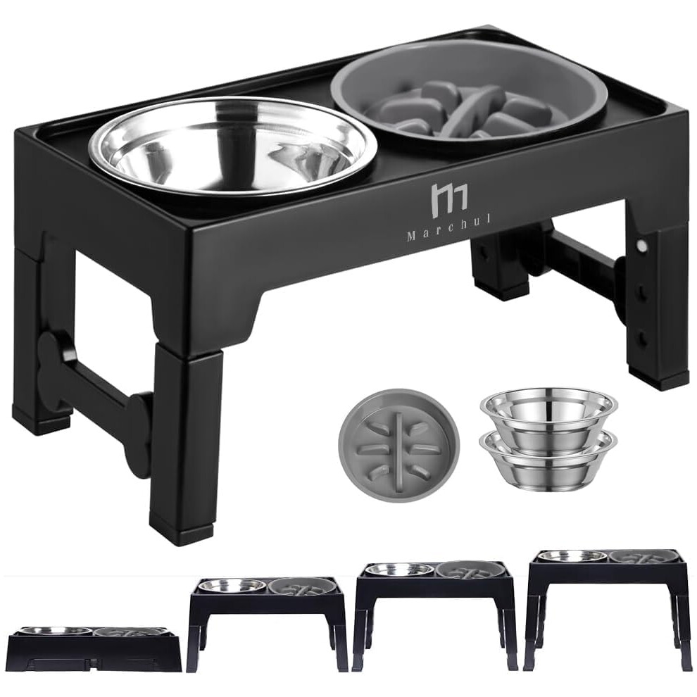 Marchul Elevated Dog Bowls 4 Height Adjustable Raised Dog Bowls with 2 Stainless Steel Bowls Non-Slip Dog Food and Water Bowl with Stand Adjusts to