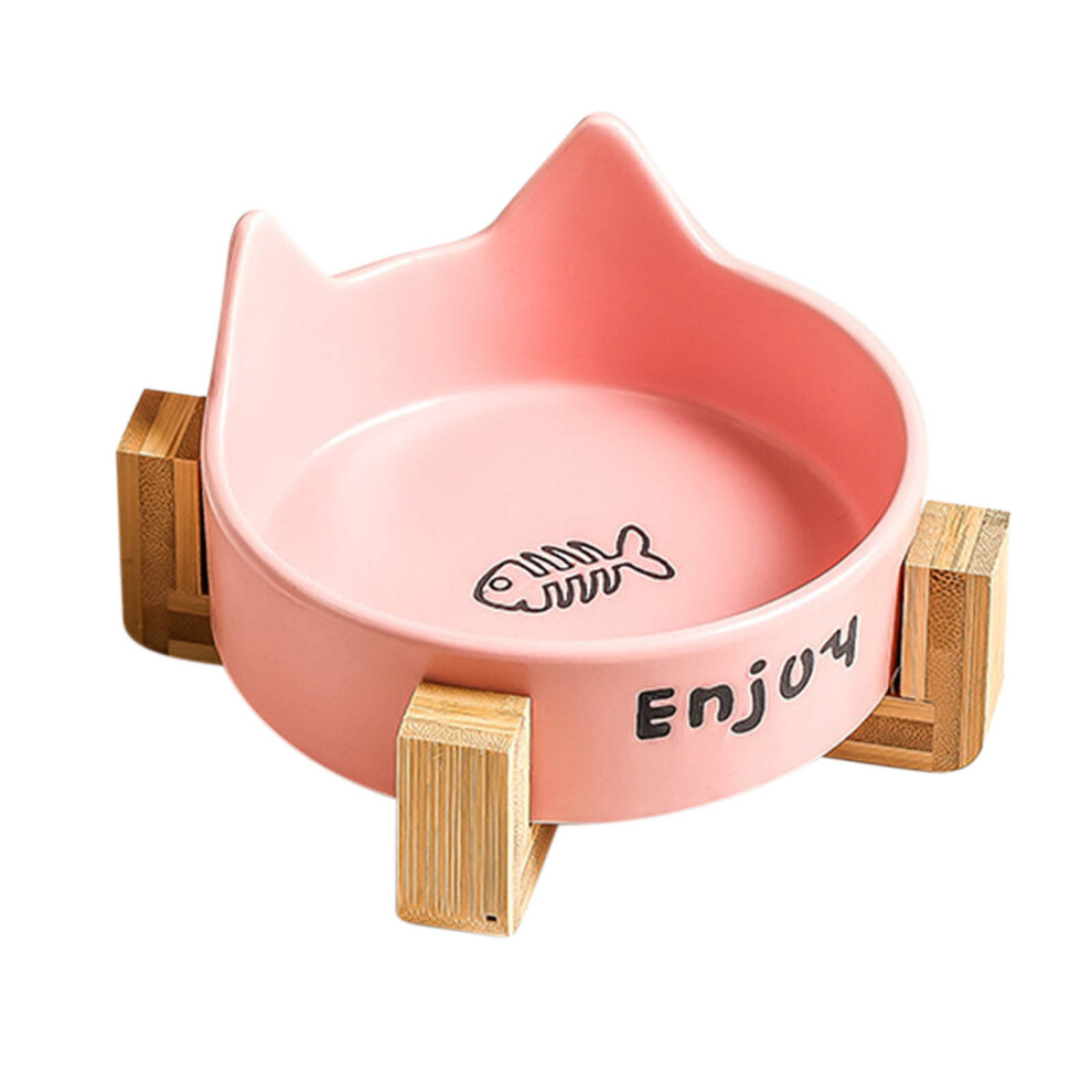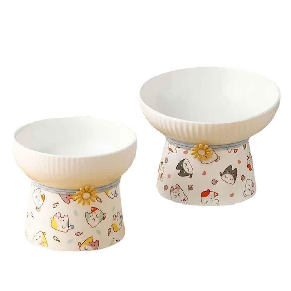 (As show, yellow) Ceramic high-footed cat bowl with contrasting color cat head and dog food bowl