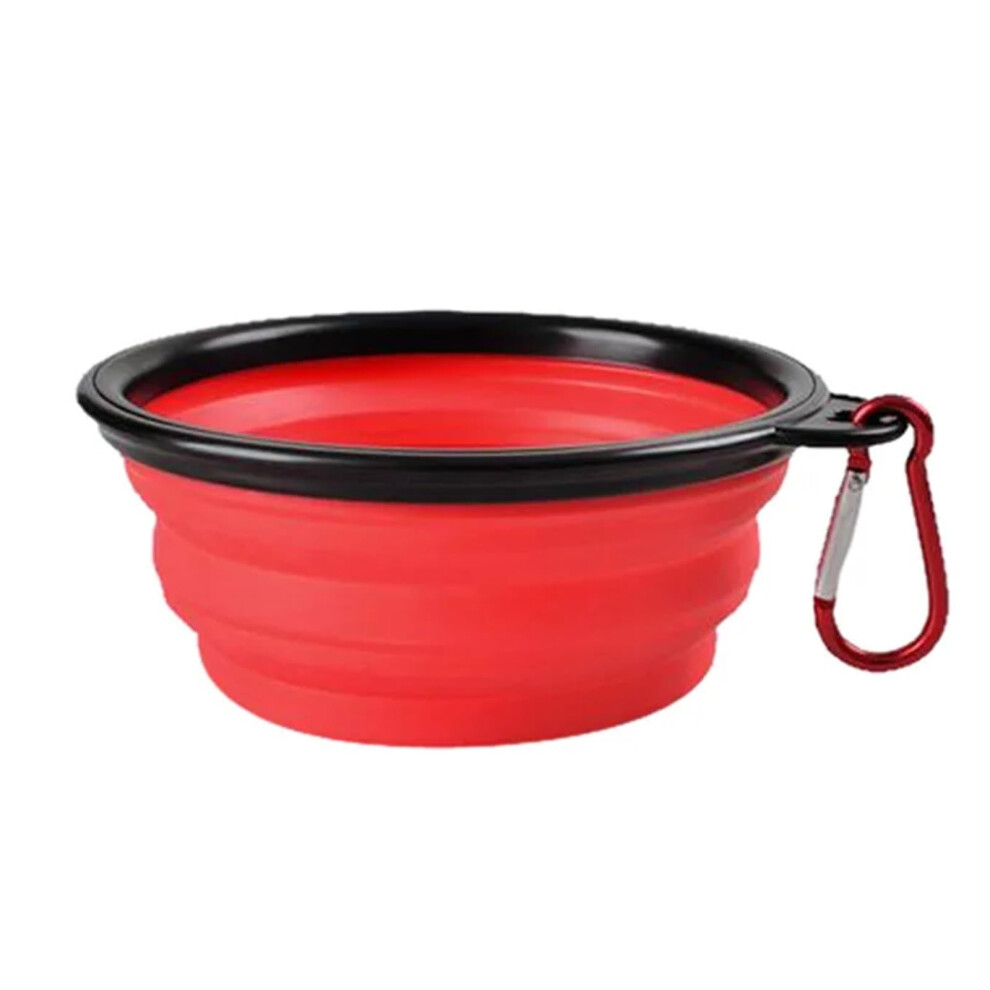 Collapsible silicone pet dog food and water bowl, outdoor camping travel, portable foldable container, comes with a bowl and carabiner, red, 350ml