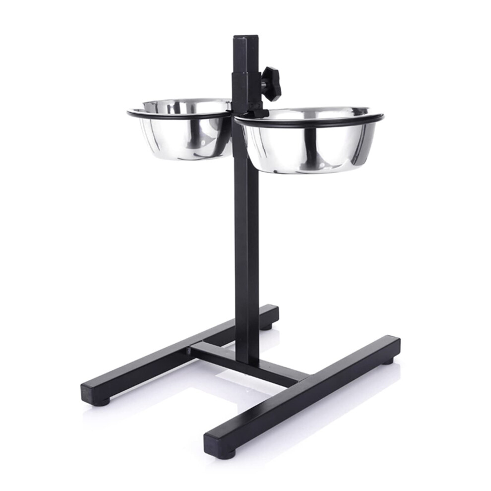 Dog Food and Water Bowl Set Stainless Steel Bowls Stand NonSlip Feeding Station 5 Height Adjustable For Puppies Cats