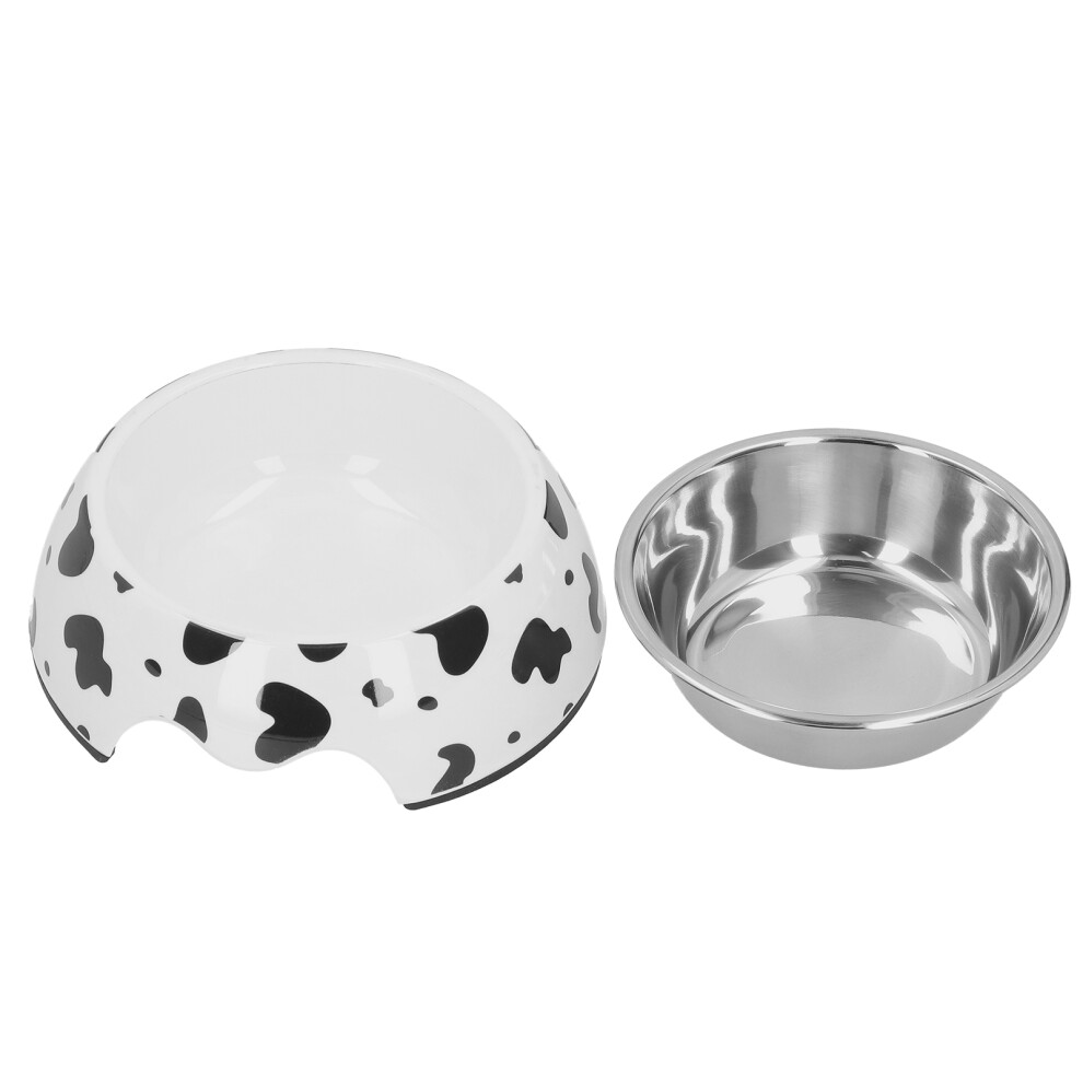 Dog Food and Water Bowl AntiSlip Base Stainless Steel Pet Bowl with Cute Cow Texture(S Cow Texture)