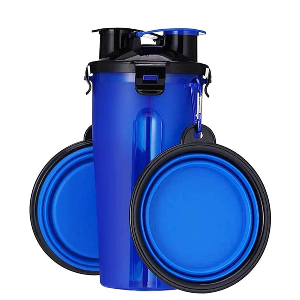 Dog Water Bottle and Food Bowl 2in1 with Two Collapsible Bowls for Hiking, Walking, Camping, Travel (Blue)