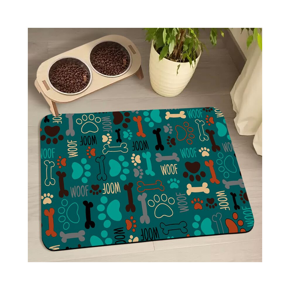 Dog Food and Water Bowl Mats - Waterproof Absorbent Pet Feeding Placemats for Floors - Green 24 * 32 Inch