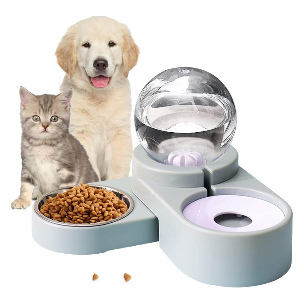 Pet Feeder, Cat Dog Food And Water Bowl Set, Automatic Pet Water Dispenser With Food Bowl (Blue)