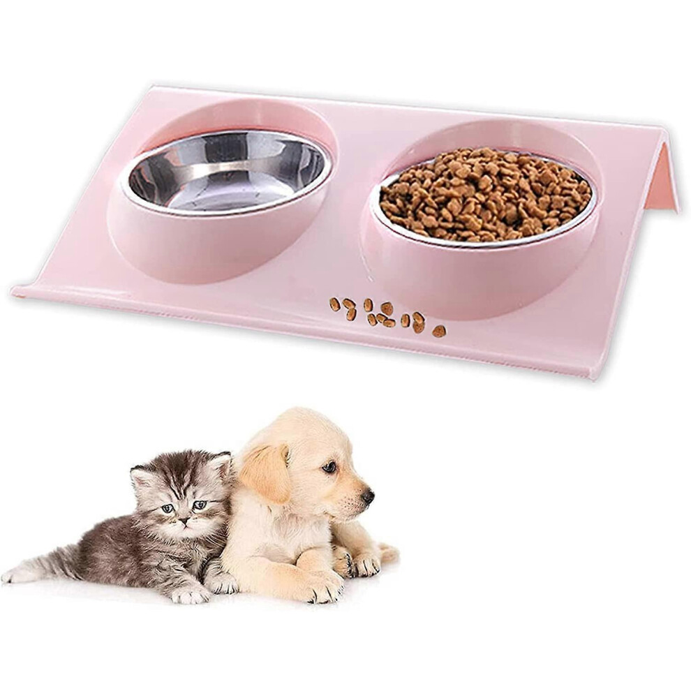 Pet Bowl Set, Dog Pet Feeder Bowl, 15 Tilt Double Food Bowl Raised Double Cat Bowl for Small Dog and Cat Food Bowl (Pink)