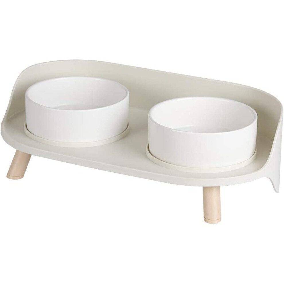 Ceramic Pet Bowls for Cats and Dogs, Raised Dog Food and Water Bowl Set with Anti-Slip Wooden Stand, Grey Food-Grade Non-Slip Feeding Dishes for
