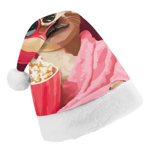 Chihuahua Dog Watch Movie Funny Christmas Hat Unisex Santa Hats Holiday Xmas Cap Classic for New Year Party Decor