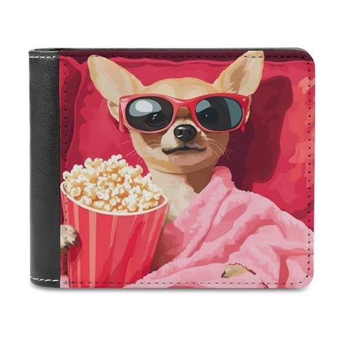 Chihuahua Dog Watch Movie Funny Wallet for Men RFID Blocking Bifold Wallet Soft Billfold with Card Slots Custom Gifts