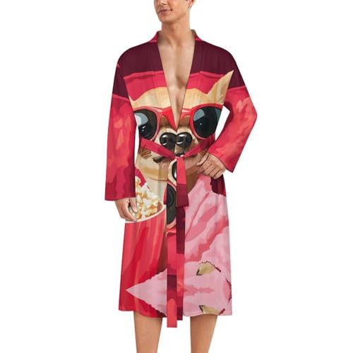 Chihuahua Dog Watch Movie Mens Bathrobe Long Bath Robe Warm Spa Robe Nightgown Soft with Waist Belt