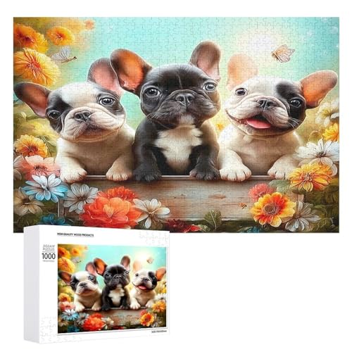 Bull Dog 1000 Piece Jigsaw Puzzles Adults Kids Cute Dog Pet Jigsaws Family Movie Night Companion Whimsical Colourful Puzzle Home Decor 1000 PCS