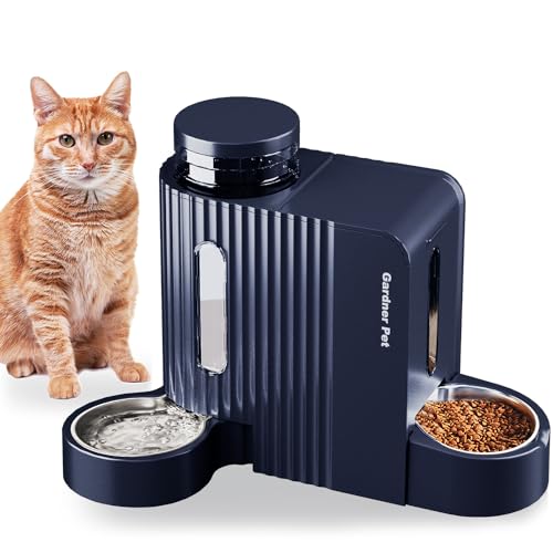 Gardner Pet 2 in 1 Automatic Cat Feeder and Water Dispenser 3L*2, Cat Bowls with Stainless Steel Bowl, Gravity Dog Water Dispenser, 100% BPA-Free, No Electricity Required, Dark Blue
