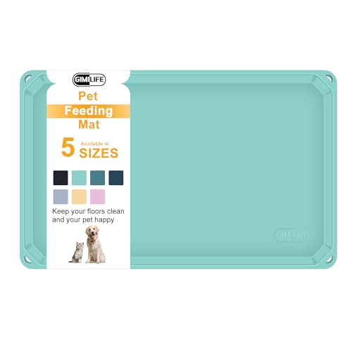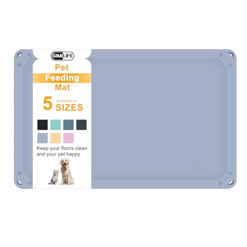 Pet Food Mat, Gimilife Silicone Dog Cat Food Mat for Food and Water, Non Slip Dogs Cats Feeding Mat with High Lips, Pet Placemat Dog Cat Bowl Mats for Messy Drinkers