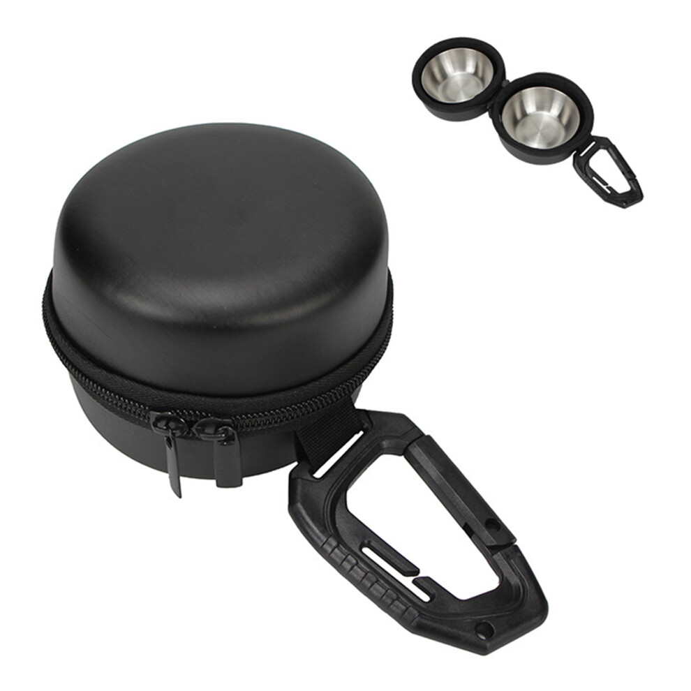 (1) Outdoor Portable Foldable Stainless Steel Double Bowl Set Pet Travel Feeder and Dog Water Bowl - Black Pet Feeding Box