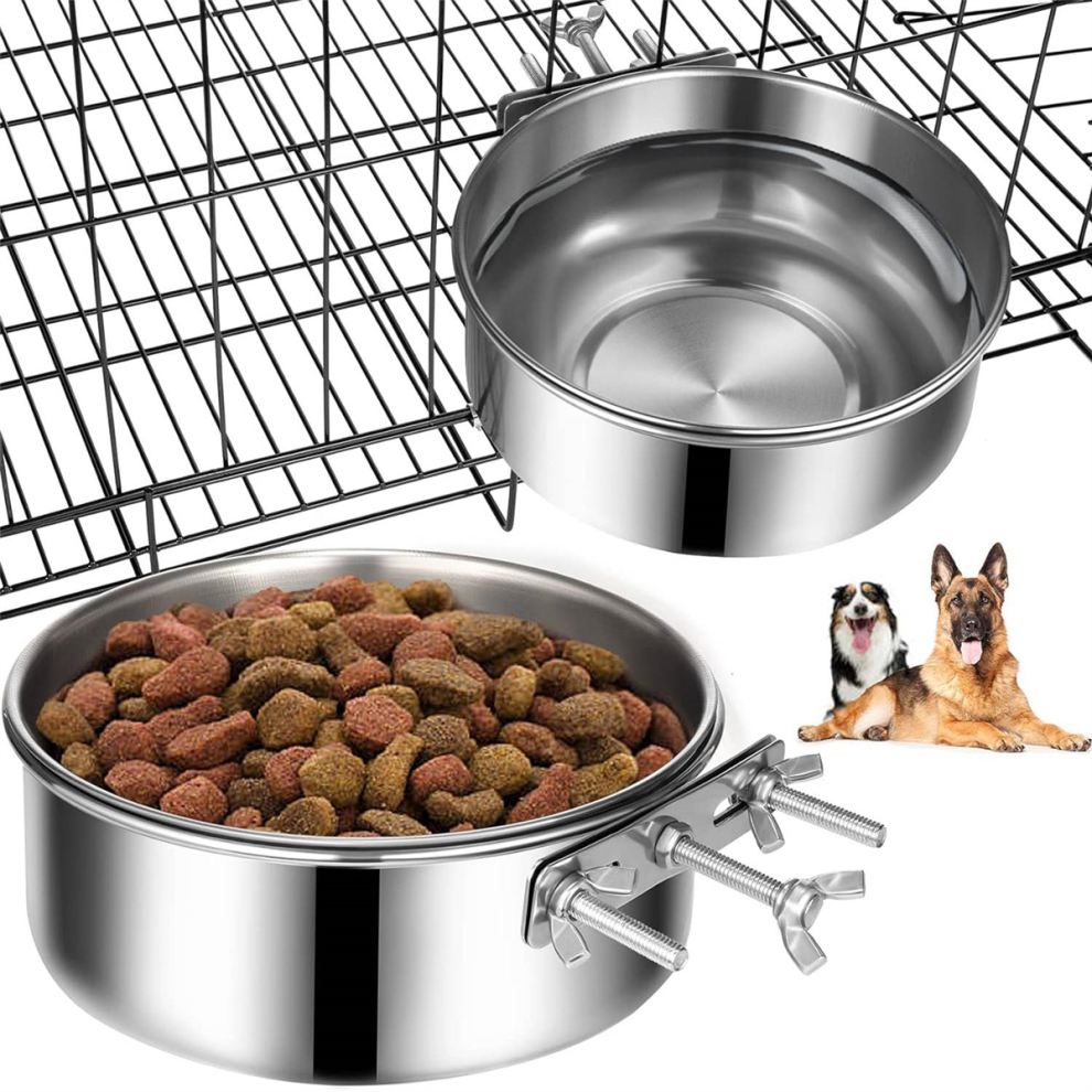 Dog Bowls Dog Bowls 2 Pack, Stainless Steel Dog Food Bowl and Water Bowl, Hanging Dog Bowls for Cage Crate Kennel, Non-Spilling
