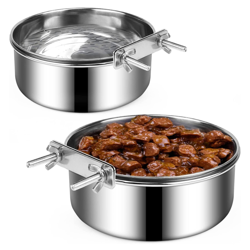Dog Bowls 2 Pack, Stainless Steel Dog Food Bowl and Water Bowl, Hanging Dog Bowls for Cage Crate Kennel, Non-Spilling