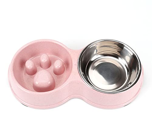 Double Slow Feeder Dog Bowl for Cat Dog and Puppy - Anti-choke Water and Food Puppy Feeder with Stainless Steel Detachable Dish and Non-Slip Bottom(S,Pink)