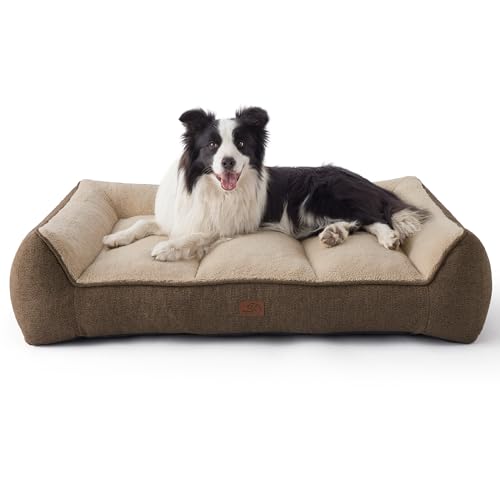 Bedsure Orthopedic Dog Beds Large - 96x71cm Extra Thick Supportive Large Dogs Sofa with Waterproof Washable Cover, L Plus Pet Bed Sofa with Soft Plush Sherpa and Nonskid Bottom, Brown