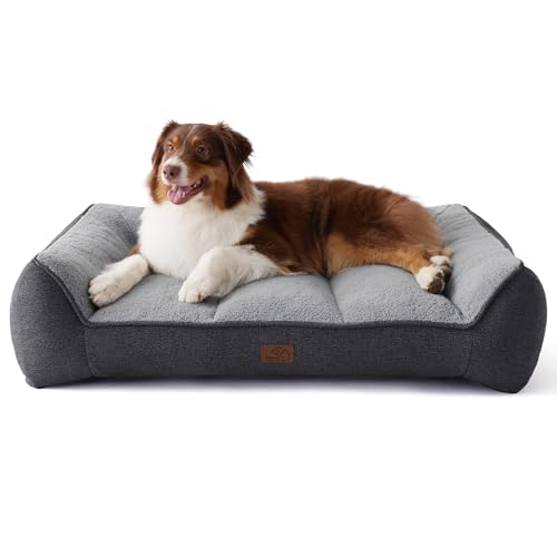 EHEYCIGA Memory Foam Dog Beds Large, Orthopedic Dog Beds Sofa with Sides and Waterproof Liner, Pet Couch with Washable Removable Cover and Non-Slip Bottom, 91x68x17cm, Charcoal